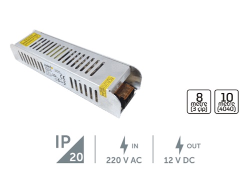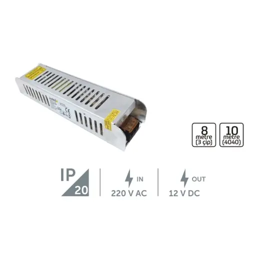 100W 8,3A Slim Tip Şerit Led Trafosu, şerit led aydınlatma için kullanılan bir cihazdır.