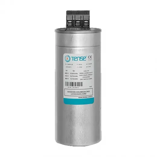 12.5 KVAR/400V Trifaze Kondansatör, alçak gerilim sistemlerinde güç faktörünü düzeltmek için kullanılır.