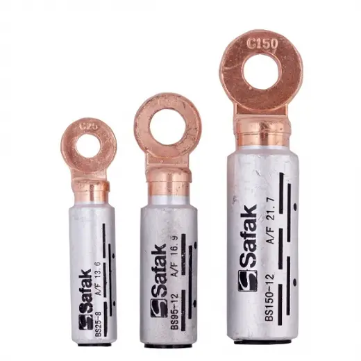 185lik Bimetal Kablo Pabucu Cu/Al Dın M12, 185 mm² kesitli alüminyum kabloların bakır terminallere bağlanmasında kullanılan bir bağlantı ürünüdür. Bu ürün, bakır ve alüminyumun birleşimiyle hem yüksek iletkenlik hem de hafiflik sağlar.