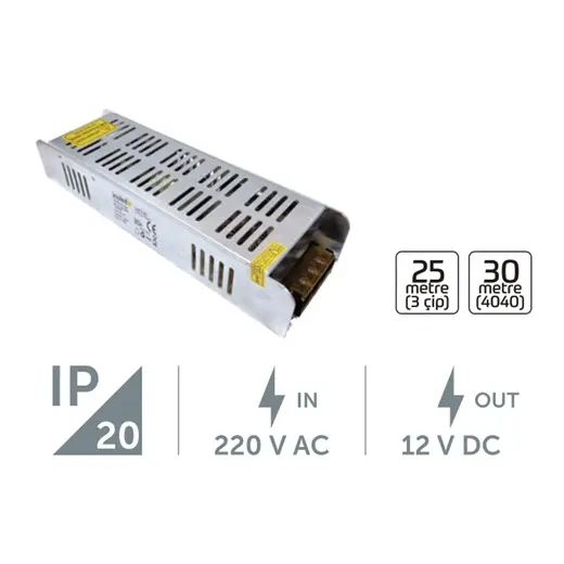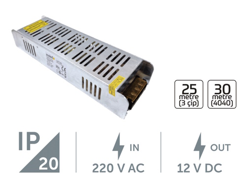 - 360W çıkış gücü ile 15 metreye kadar şerit ledi besleyebilir