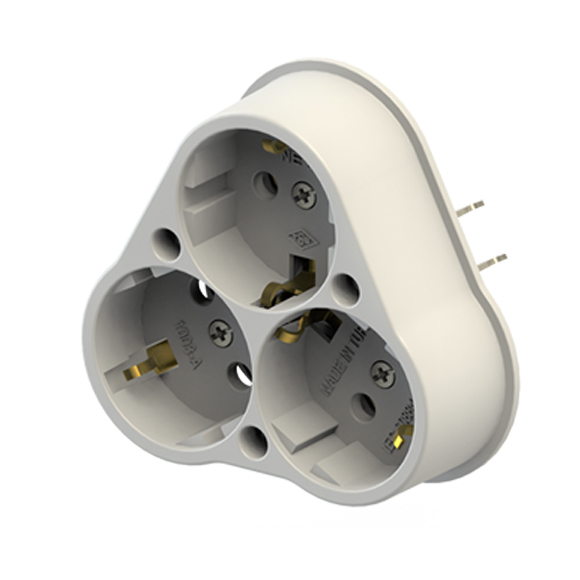 Üçlü Sıva Altı Topraklı Priz, elektrikli cihazları trifaze şebekelere bağlamak için kullanılan bir aksesuardır.